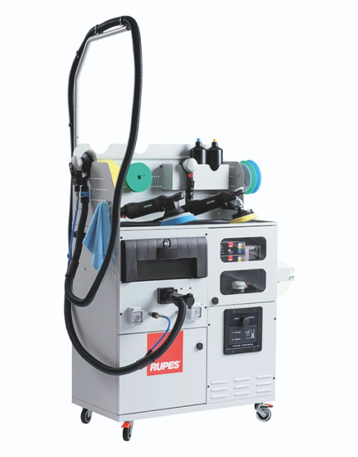 Trolley de rangement avec turbine d'aspiration intégrée compacte, simple à installer et pouvant être facilement déplacé dans la zone de travail.