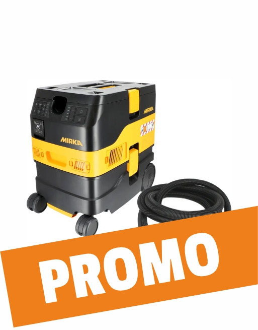 Ce pack comprend un aspirateur Mirka DEXOS avec tuyau 4 m pour plus de mobilité ainsi qu’une ponceuse DEROS II en coffret pour un travail précis et confortable.