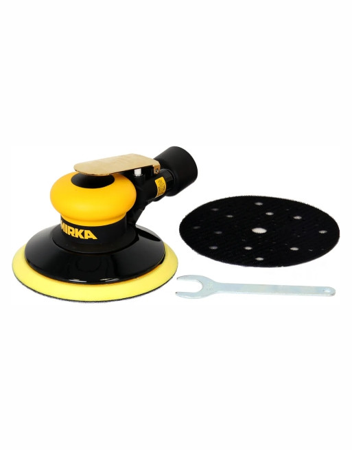 Ponceuse pneumatique orbitale Mirka® ROS Ø 150 mm ergonomique pour un confort d'utilisation optimal. Conçue pour extraire une quantité maximale de poussière, même à faible puissance d'aspiration, elle bénéficie, malgré un régime pouvant atteindre 12 000 tr/mn, d'un niveau sonore réduit.