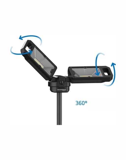Projecteur de 2500/5000 lumens avec trépied intégré pour batteries 18/20 V. Extensible jusqu’à 2 mètres, articulé et orientable à 360°, il offre 2 niveaux de luminosité (50-100%). Par ailleurs, vendus séparément, l’alimentation secteur CONNECT pouvant être utilisée pour une alimentation directe sur secteur et connecteurs SCANGRIP permettant d’adapter la batterie des outils au projecteur (19 connecteurs compatibles avec les systèmes de batterie des grandes marques d’outillage électroportatif).