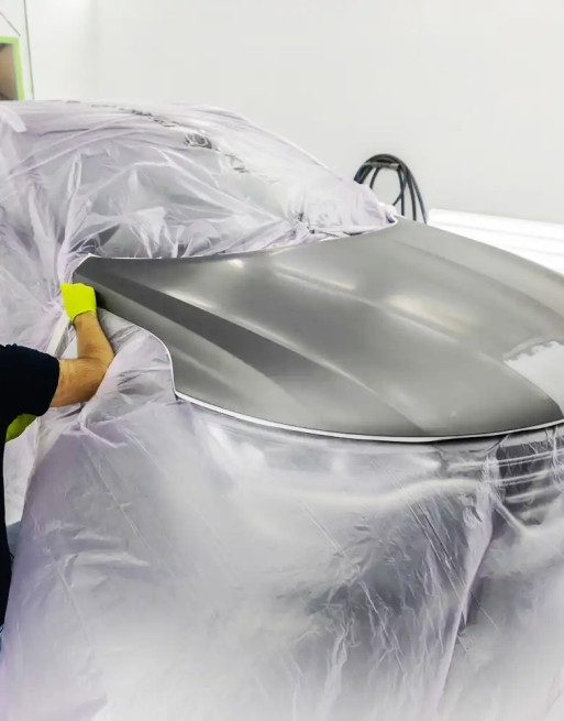 Film statique semi-transparent avec une parfaite adhérence à la carrosserie, largeur 4 x 150 m, épaisseur 8 microns.